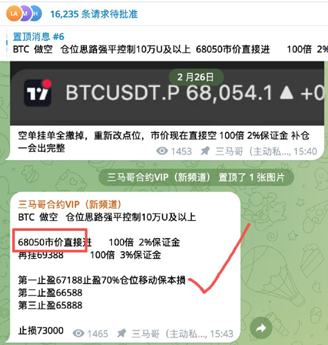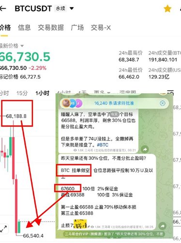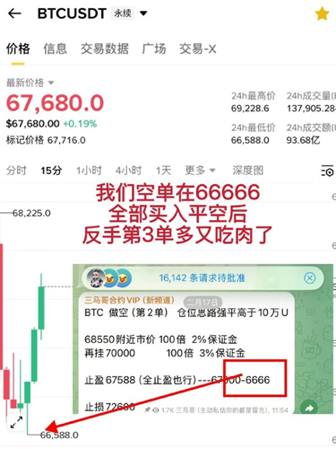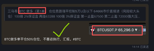 三马哥再次封神了,提前预判了BTC做空单的最后止盈目标是66666,刚才我们严格执行策略空单精准全部66666买入平空,然后第3单多又吃了现在!👉提前预判买入平空点位