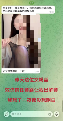 我们曾经相识相知相爱爱在3年前,当时她有个狗狗币多单重仓被套了,咨询三马哥要割肉还是拿一拿,后来三马哥看她朋友圈是一名上海戏剧学院的在读表演生,当时调侃她我说想解套过来找我,后来真的来找我了。