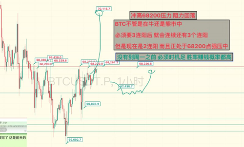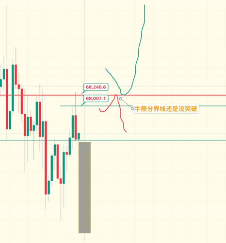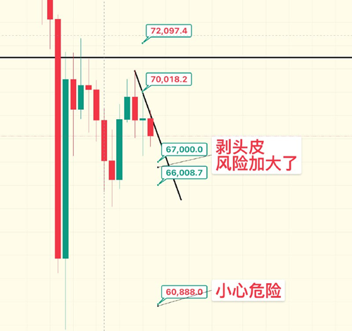 只要现实走势突破站稳68500你才能说看到72000美元,这就是右侧交易。