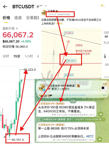 2月25日内还有个日内65800短线做空到65000的单子,最终70%仓位获利110%左右全部结束。👉空到65188后反手多到7万记录,还给了你方向