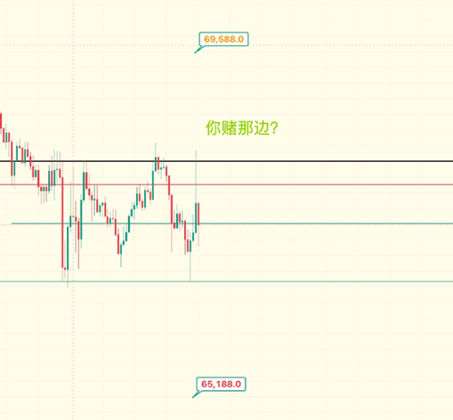 比特币今天会突破横盘震荡区间,上方69588,跌破下方是65188.