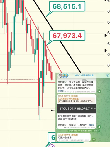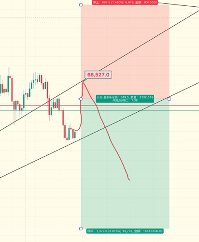 马上开盘了波动不再是2000美元区间了,预计至少在5000范围波动,暂时没有单边还是震荡。BTC昨天我们在67588做多到69000完美止盈后,反手两次空又吃了200%累计的利润。