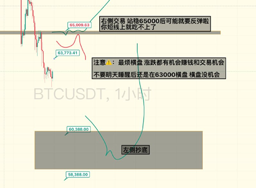 震荡行情哪里上车?还能64000做多吗?昨天63000告诉你做空盈亏不高你不听吗?这种走势其实赚钱最容易,牛市更容易。