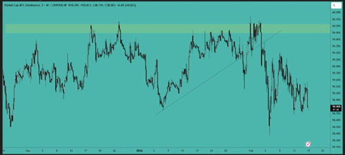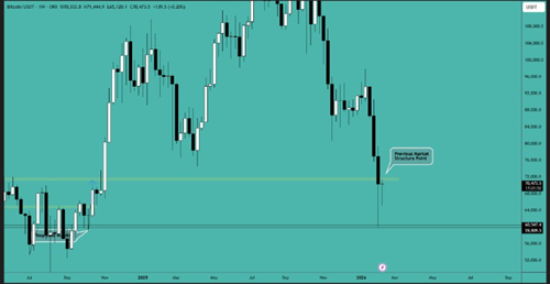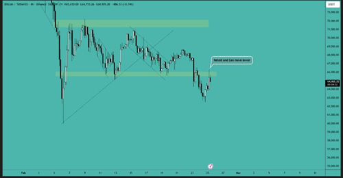 比特币跌破 66,000 美元区间的支撑位,并在 63,000-64,000 美元附近获得流动性。目前我们看到价格正在重新测试 65,000-66,000 美元附近的跌破水平,该水平可能构成阻力。如果此处确认受阻,则价格将继续上涨……