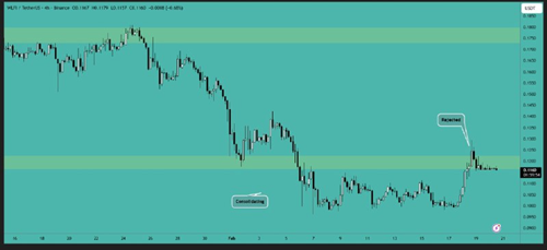 AIXBT 已从支撑区域反弹,多头头寸已带来超过 12% 的盈利。价格目前再次测试支撑区域,如果您之前错过了该支撑区域,现在可以在该支撑位建立多头头寸。预计在积累之后价格将上涨一波。