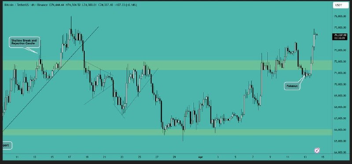 比特币已突破阻力区。我预计价格将向 75,000 美元关口迈进,让我们看看价格在该位置的反应。市场前景乐观,我预计价格将出现上涨行情。