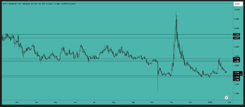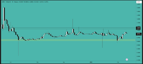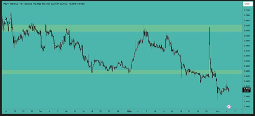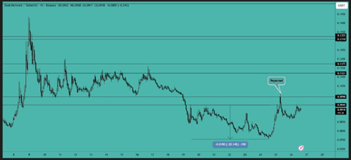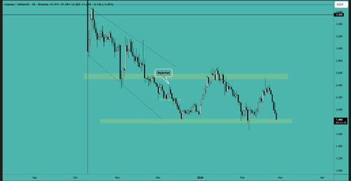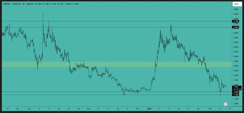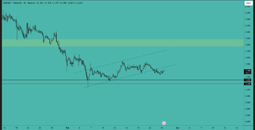 RENDER 目前仍在横盘整理,但已形成看跌旗形并有所突破。一旦价格如前所述开始突破支撑区域,我们就可以建立空头头寸,并预期至少会有 15% 到 20% 的波动。