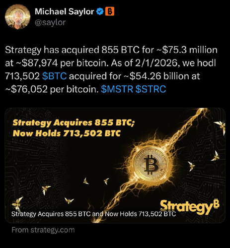 As of Jan 25, 2026, total holdings stand at 712,647 BTC, acquired for roughly $54.19B at an average cost basis of ~$76,037 per BTC. 策略更新: