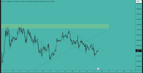 比特币已突破 66,000 美元的阻力位,目前在该水平上方交易。下一个目标是 72,000 美元区域,价格需要突破该水平才能获得进一步的上涨动能。