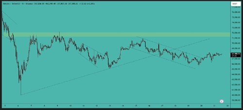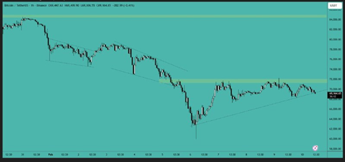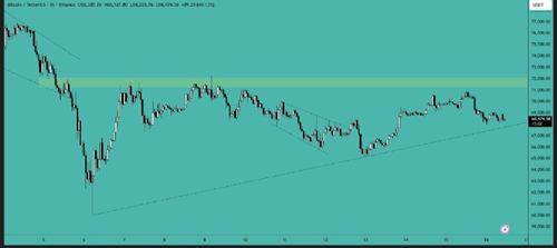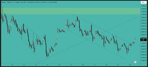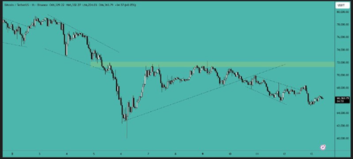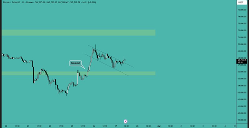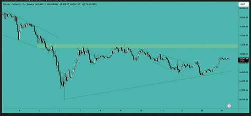 Bitcoin has broken the $66,000 resistance level and is now trading above it. The next target is the $72,000 area, and the price needs to clear this level to gain further upward momentum.