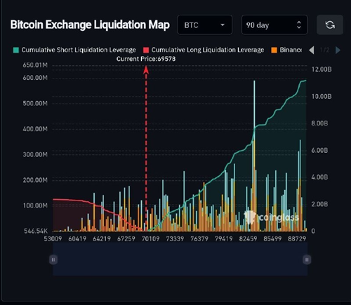 比特币已经突破了下降楔形形态,这是一个好兆头。价格目前正朝着 90,000 美元的目标迈进,突破该目标将导致价格上涨。
