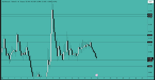 DUSK 在反弹前触及了新低。价格触及了阻力区域,但在第一次尝试中被拒绝。如果价格收于 0.10 美元上方,则可开立多头头寸。