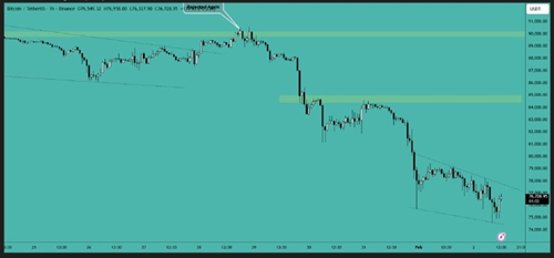比特币在暴跌后出现了一些回升迹象。目前在 84,700 美元至 85,000 美元附近存在阻力。黄金和白银大幅下跌,而比特币保持稳定,这是一个好兆头,因为资金现在可能会流入加密货币市场。周末已至,预计市场走势将较为波动。