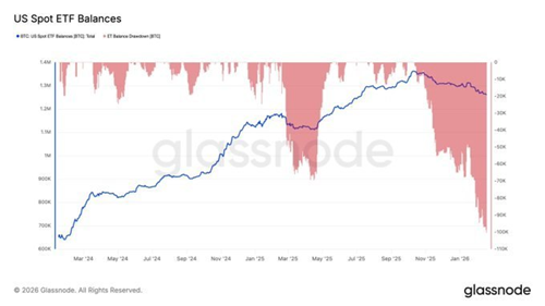 Holdings are down approximately 100.3K BTC, signaling continued institutional de-risking and persistent structural sell pressure.