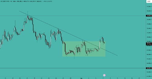 短期内价格预计将向区间顶部 75,000 美元迈进——在价格到达该位置之前,请勿做出任何决定。