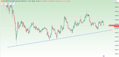 短期压力:70,772.4(上方第一道硬阻力,近期多次卡住的区域,必须有效突破才能重拾升势)