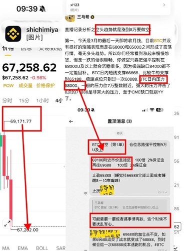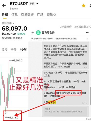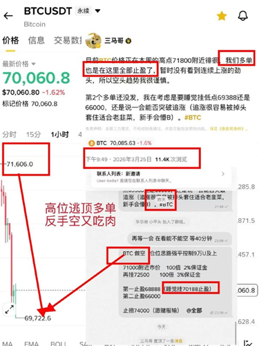 昨天跌破7万到时候三马哥喂饭了68688的做多单和视频讲解,就怕有人傻乎乎的追空进去,不然你睡醒肯定是被套或者爆仓。