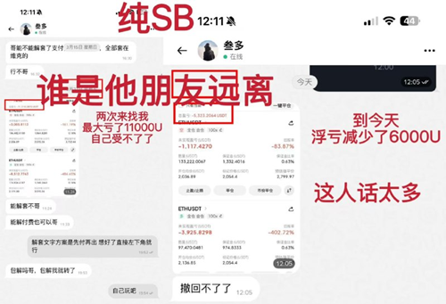 昨天直播的时候聊天室有几个韭菜,在三马哥公开2138做空的位置开多,被套了几百U和几千U不等,有两个人强平900多U那么好的仓位居然还割肉了。