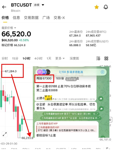 第六单 BTC67500空 到达第一止盈位,66588 拿下900点 使用一百倍杠杆利润达到130%行情最低来到66200开始反弹👉