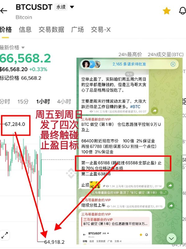 周三:第八单BTC68100做空 周四睡醒67388止盈 拿下700点 利润100%有小伙伴拿到了第一止盈位66588。随后行情下跌至65800以下。👉