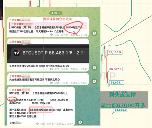 中间有不少小伙伴在67200附近加仓调整均价,提前逃命,甚至有不少小伙伴盈利。